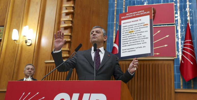 “Ama sen bundan korktuğun için yani ‘Ya Özgür Özel biz ara seçime gidince İstanbul’da, Bursa’da, Aydın’da, Adana’da, Antalya’da sandık koyarsa. Adıyaman’da, operasyon çektiğim şehirleri çok daha güçlü olarak kazanırsa. Milletin darbeye tepki verdiği görülürse, bir de Türkiye’nin yüzde 70’inde birinci parti olup, farkı bana sekiz puan atarsa nasıl oturacağım o koltukta?’ diye bakıyorsun. Ama başka bir yere bakacağız. Şimdi günün en keyifli yerine geldik. Anayasa madde 78; ‘TBMM üyeliklerinde boşalma olması halinde ara seçime gidilir.’ Anayasa… ‘Ara seçim her seçim döneminde bir defa yapılır.’ Anayasa. ‘Yapılabilir’ demiyor, ‘Yapılır’ diyor. ‘Genel seçimlerden 30 ay geçmedikçe ara seçime gidilemez. Ancak boşalan üyeliklerin sayısı üye tamsayısının yüzde 5’ini bulursa ara seçim üç ay içinde yapılır.’ Yani o yüzde 5 ve 30, olağanüstü ara seçim, hiç beklemeden. ‘30 kişi boşalmış parlamentoda, ne bekleyeceksin 30 ay?’ diyor, hemen yap. Ama zorunlu ara seçim ‘Dönemde bir kere ve üyeliklerde boşalma olduğu halinde gidilir.’ Sorumluluk kimin? Bütün Meclis’in, başta Meclis Başkanı. Şimdi dün DEM Parti’ye gittik, durumu anlattık. DEM Parti dedi ki ‘Ara seçim talebi meşrudur. Anayasal‘dır, destekliyorum.’ Öyle ‘Şunu istifa ettireceğiz, bunu istifa ettireceğiz…’ Onlar ilk 30 ayda lazımdı.”